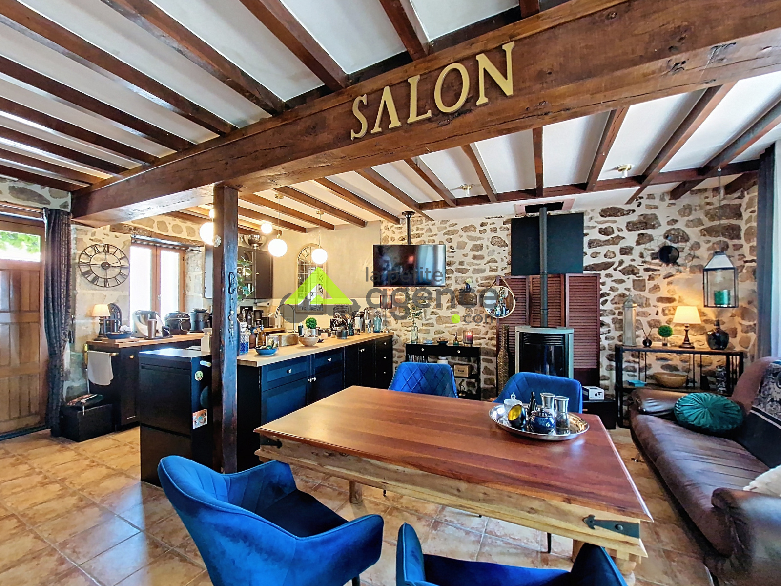 Au calme, dans un environnement paisible, belle maison de caractère avec ses pierres apparentes offrant au rez de chaussée, une magnifique pièce à vivre avec sa cuisine ouverte de 36 m², un espace détente et une salle d'eau refaite à neuf (douche à l'italienne)