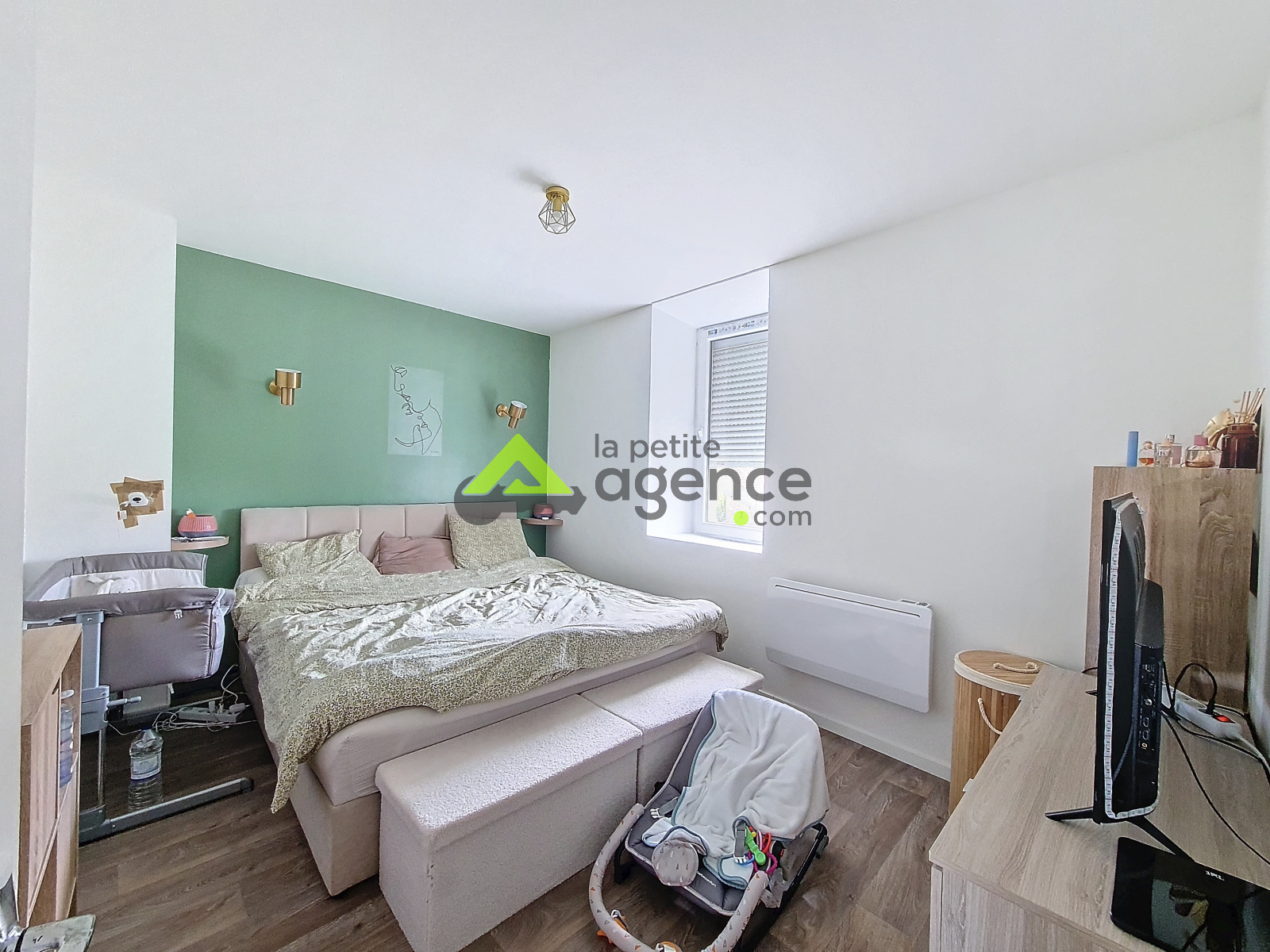 La maison d'environ 90m² se compose en rez-de-chaussée d'une entrée avec placards de rangements, une cusine ouverte sur la salle à manger, de multiples ouvertures en double vitrage récent, et un poêle à bois dans le séjour. Au 1er étage, un palier distribue 3 belles chambres et un dressing.