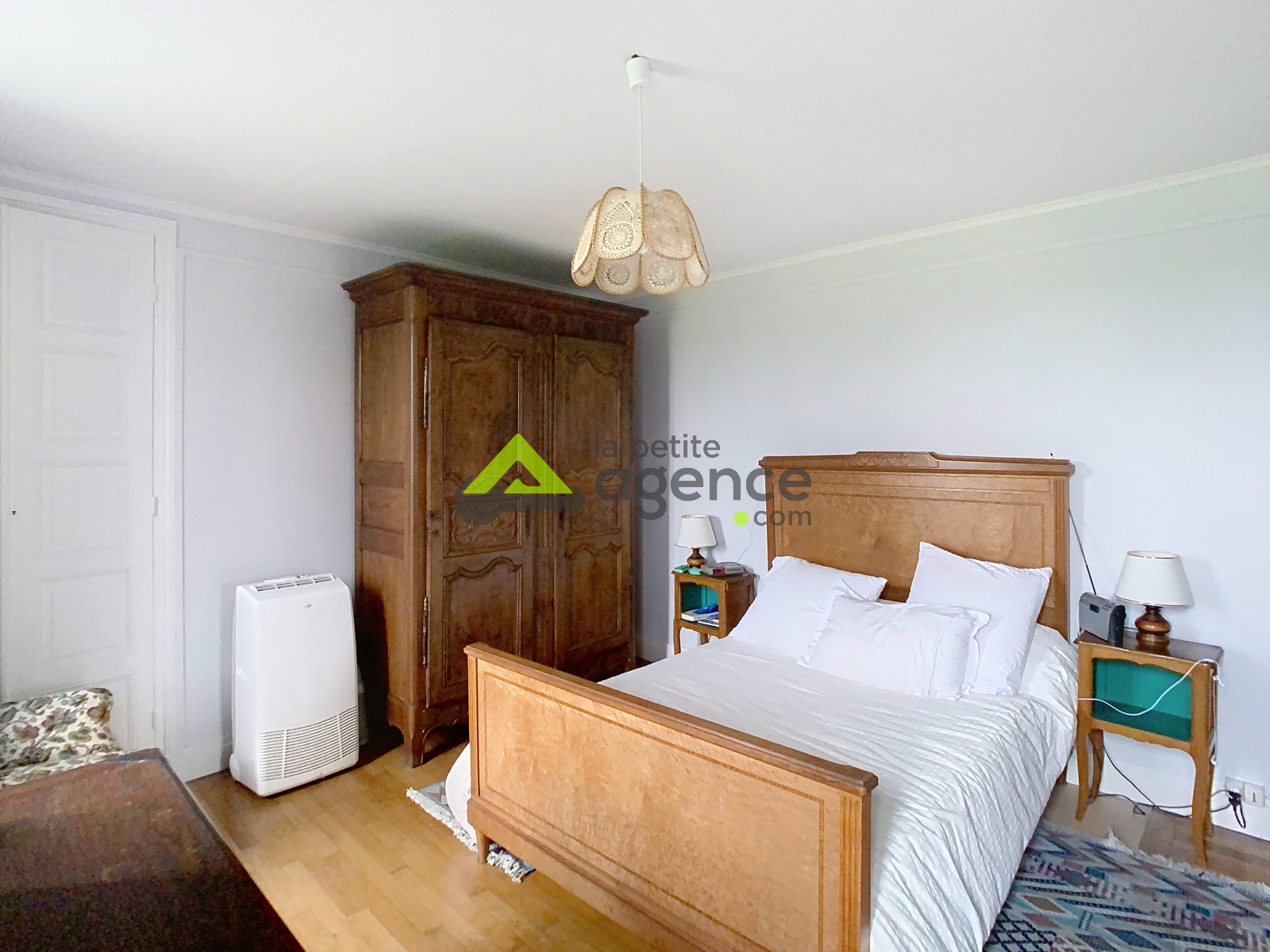 - à l'étage trois belles chambres avec placards et jolis parquets et balcons donnent sur le jardin et la campagne environnante, une salle de bain et un cabinet de toieltte avec wc.