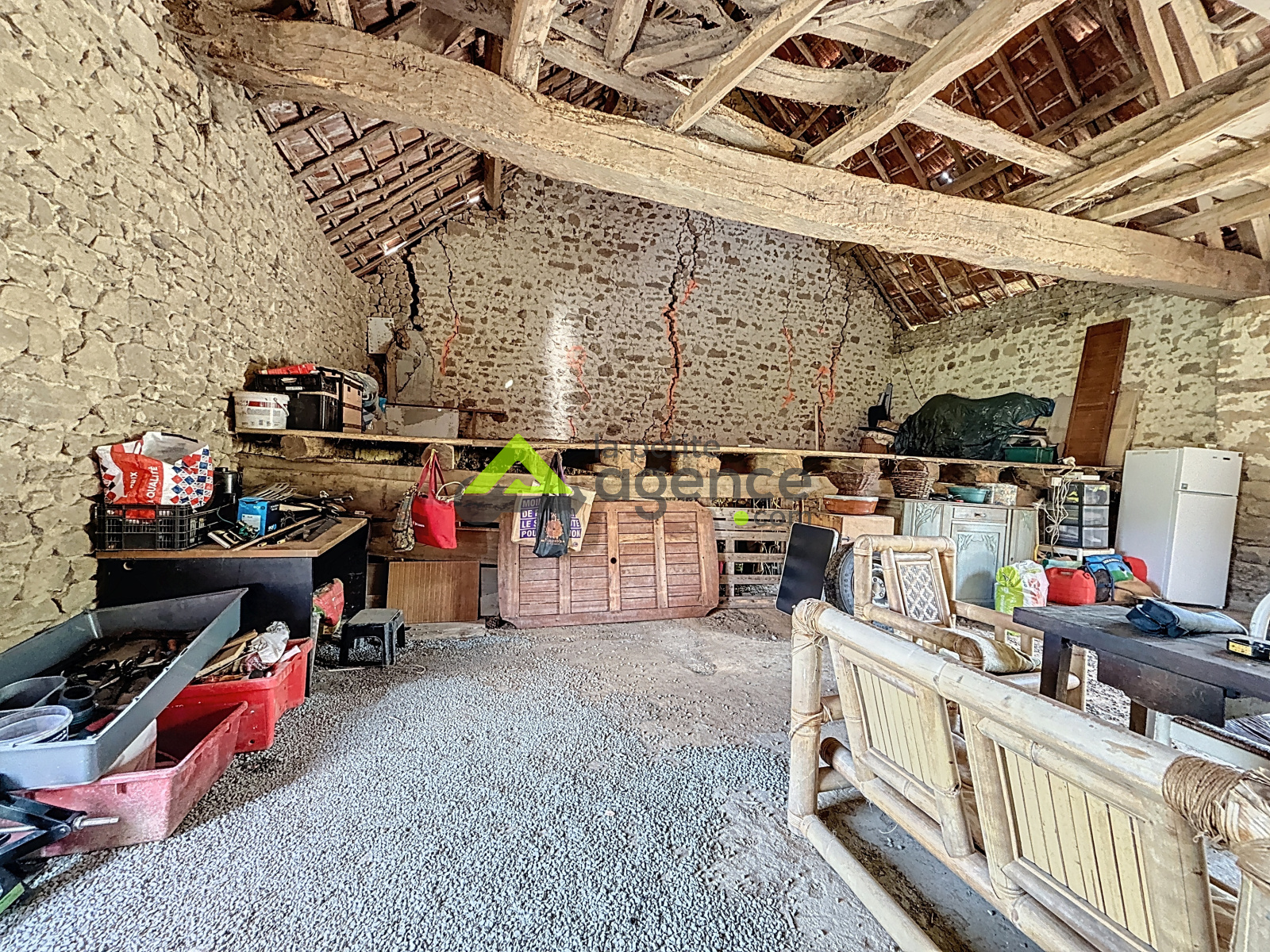 Cette belle grange en pierre possède une charpente en bon état. Les arrivées d'eau et d'électricité sont à proximité immédiate + travaux à prévoir!
